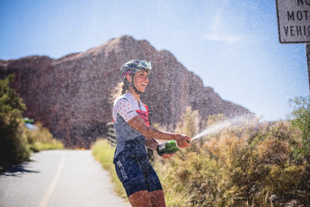 With 10 miles to go I looked at my time. If I could do the final 10 miles in 1 hour then I could still break my goal. All the way to the finish I was repeating to myself, “no mistakes” and “respect the trails” and “smooth is fast.” When I made it through the final technical feature, I couldn’t help but feel overjoyed with emotion that I had made it and without any mishaps or mechanicals. I crossed the finish line in 5 hours 50 minutes and 38 second. The previous fastest time on that particular route was 6 hours and 47 minutes (for men or women).