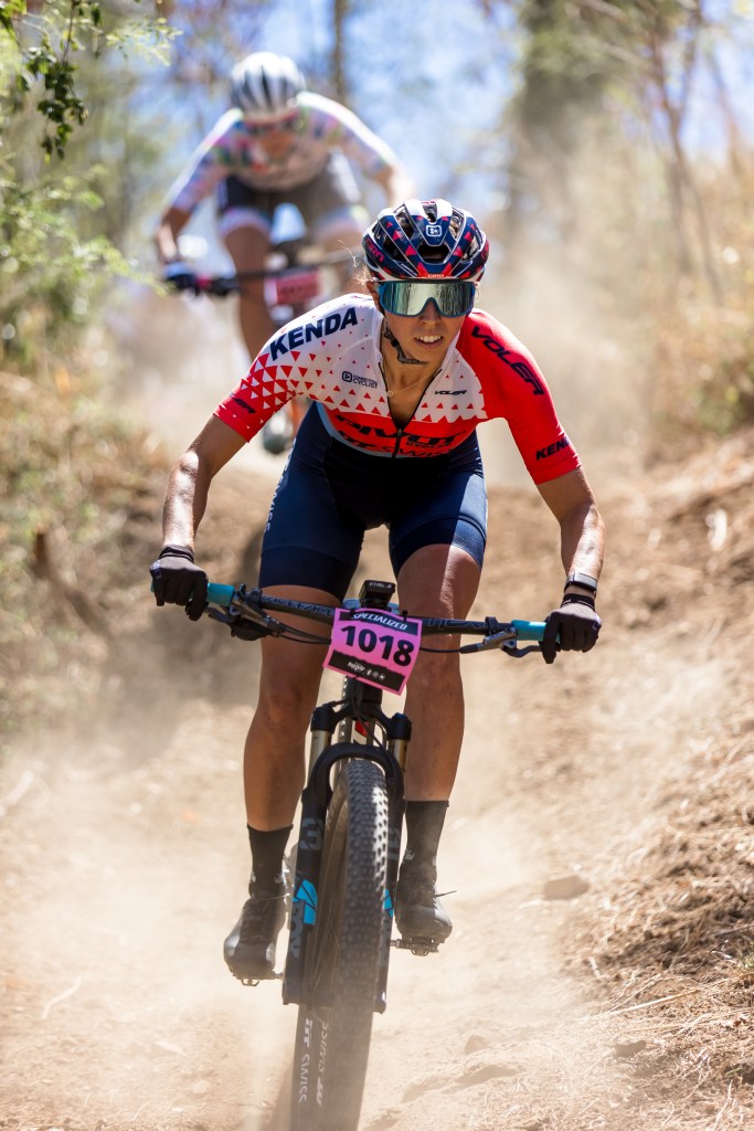 When the whistle blew, we accelerated off of the line. This time, I missed my pedal but was able to put in an extra dig right before the single track. I entered the first big climb leading the race and feeling like I was setting a solid, but maintainable pace. As we came toward the end of the lap, Gwen and I had once again gapped the field and I was feeling strong.